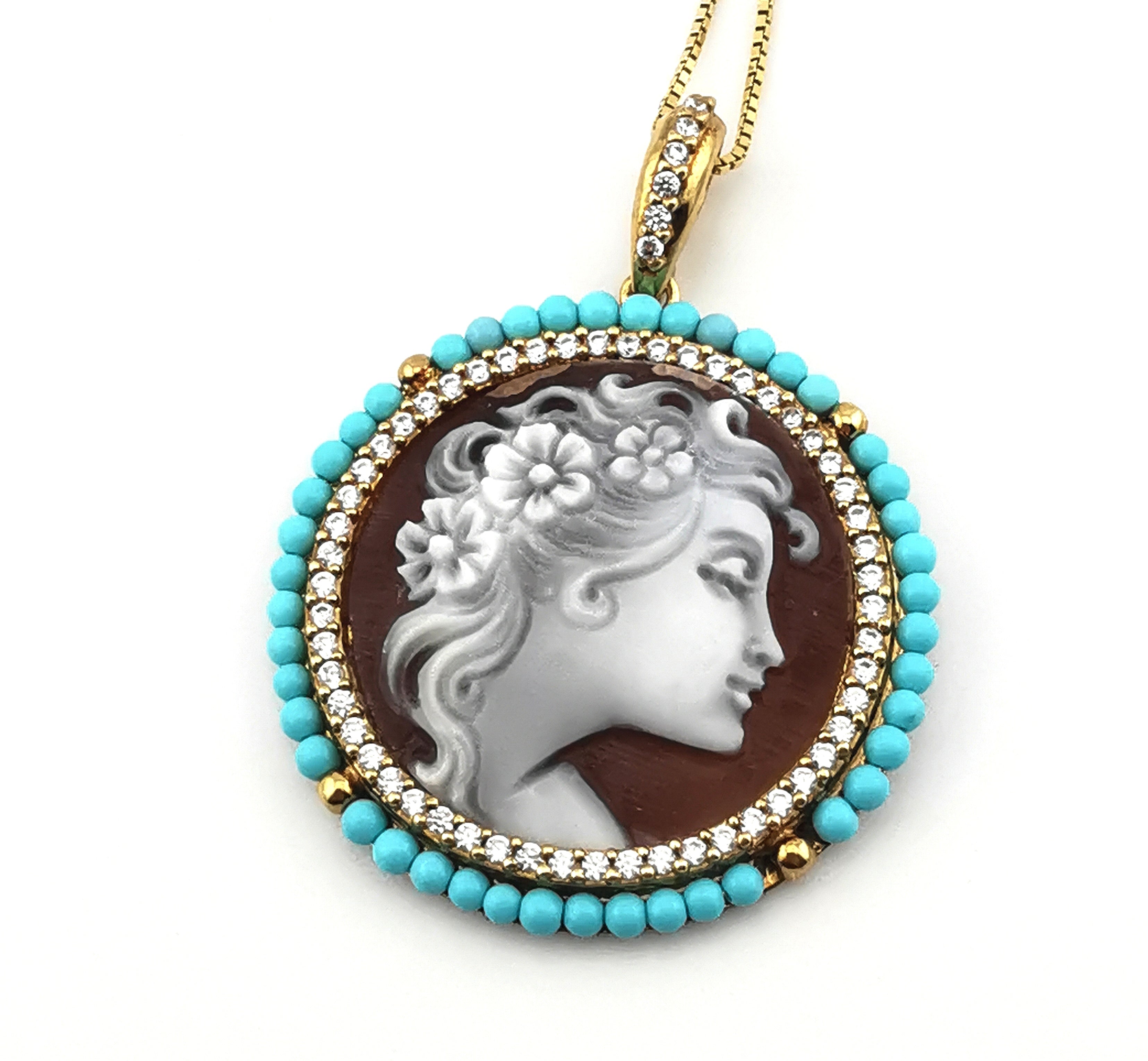 Anello cammeo floreale da 10 mm con pallini di corallo rosso in argento 925 rodiato